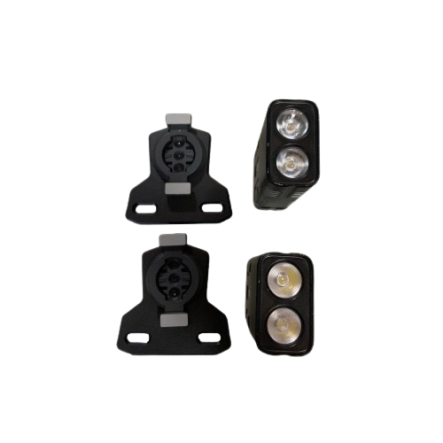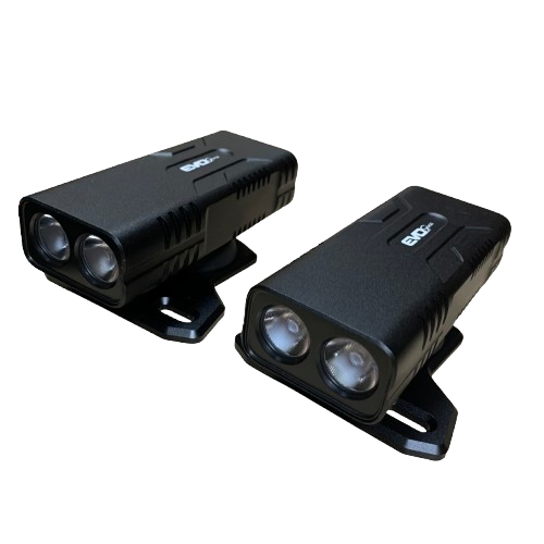 Double lampe EVO-850 Front Dual : 2 x 850LM, 3 modes, batterie 6000mAh, étanche IPX64. Éclairage puissant et installation rapide.